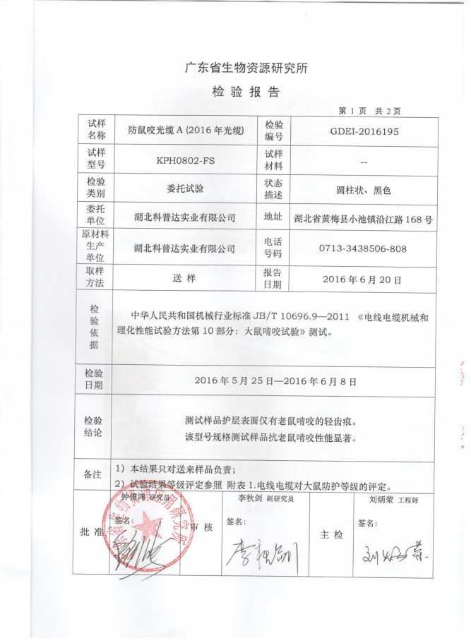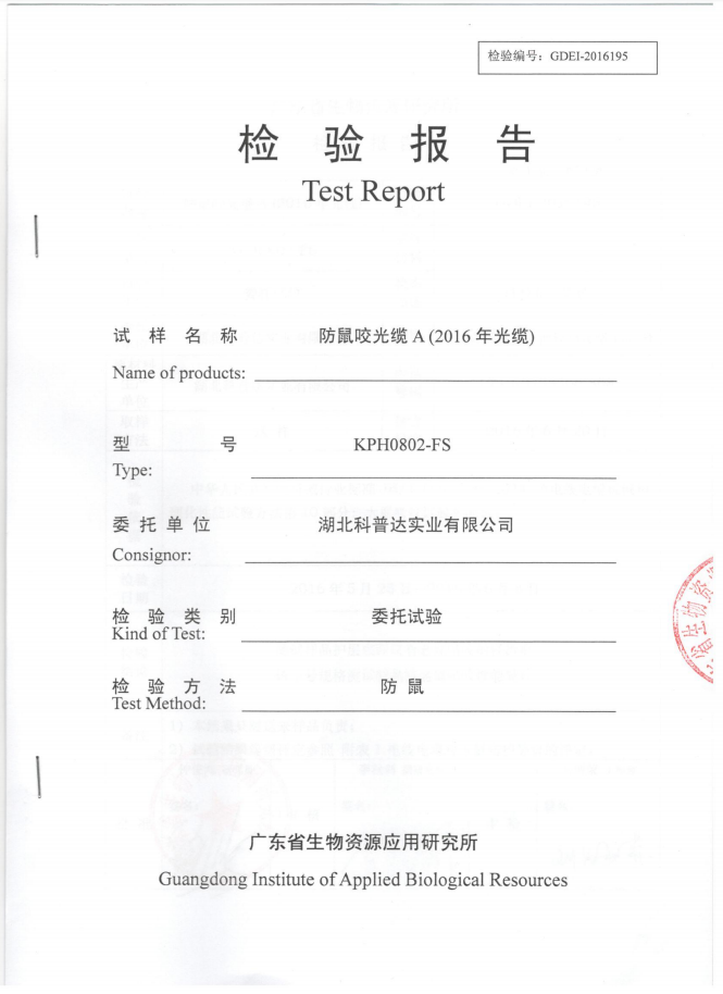 科普達防鼠咬光纜檢測報告KPH0802-FS(A樣)